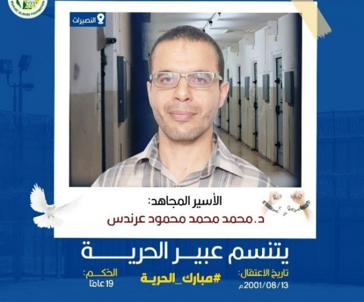 أفادت مؤسسة مهجة القدس للشهداء والأسرى والجرحى اليوم؛ أن قوات الاحتلال الإسرائيلي أفـرجـت عن الأسير المجاهد الدكتور محمد محمد محمود عرندس (42 عاماً) من مخيم النصيرات وسط قطاع غزة، وذلك بعد أن أنهى مدة محكوميته البالغة 19 عاماً.