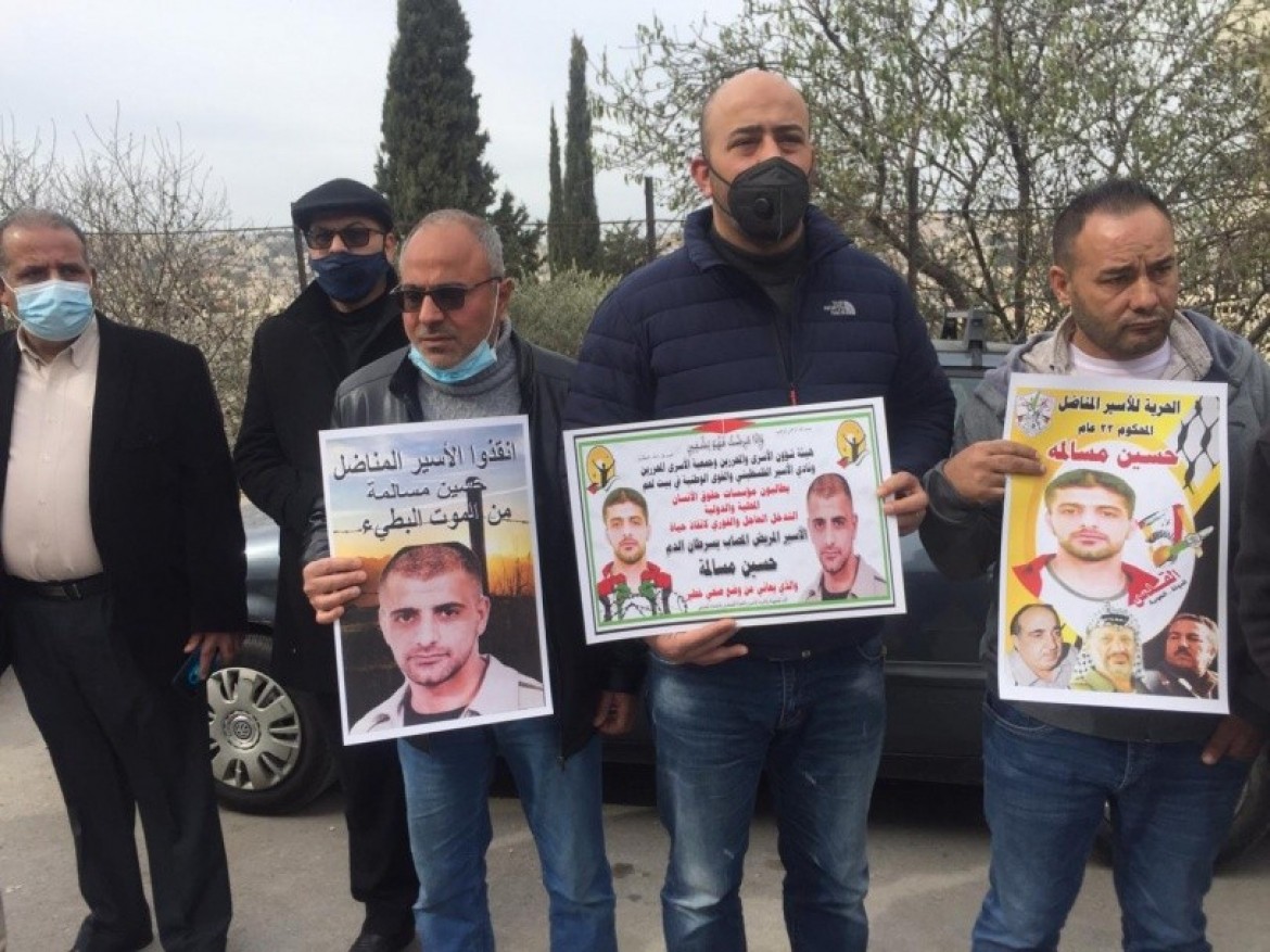 وفي كلمته، ناشد والد الأسير مسالمة، المؤسسات الحقوقية والإنسانية، بالتدخل العاجل للإفراج عن نجله الذي يعاني من مرض السرطان، كي تتسنى له معالجته.