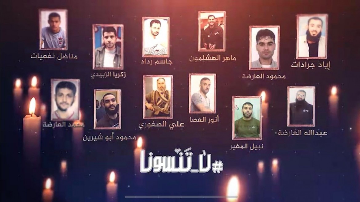 عن اخوانكم الأسرى داخل السجون: محمود عارضة، محمد عارضة، نبيل المغير، زكريا الزبيدي، مناضل نفعيات، علي الصفوري، ماهر الهشلمون، أنور العصا، عبد الله عارضة، جاسر رداد، إياد جرادات، محمود أبو شيرين)