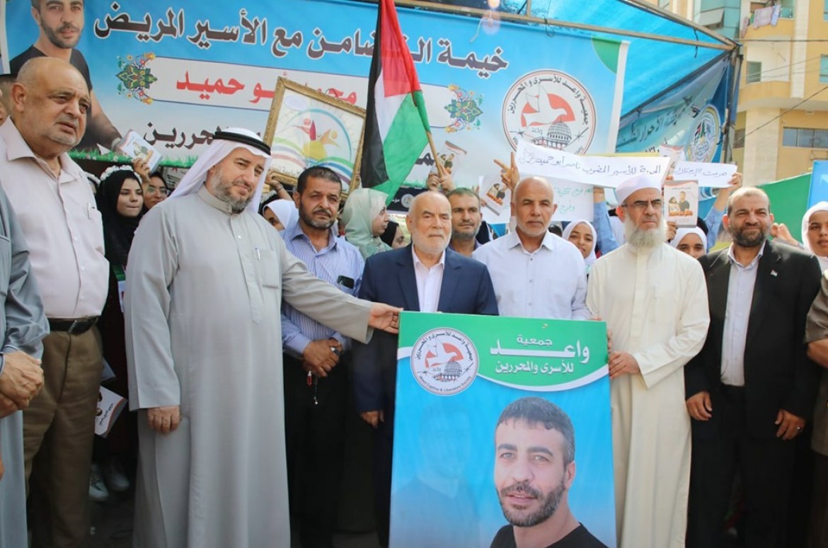 شارك وفد من المجلس التشريعي الفلسطيني برئاسة أحمد بحر رئيس المجلس بالإنابة في خيمة التضامن مع الأسير المريض ناصر أبو حميد أمام مقر اللجنة الدولية للصليب الأحمر غربي مدينة غزة.