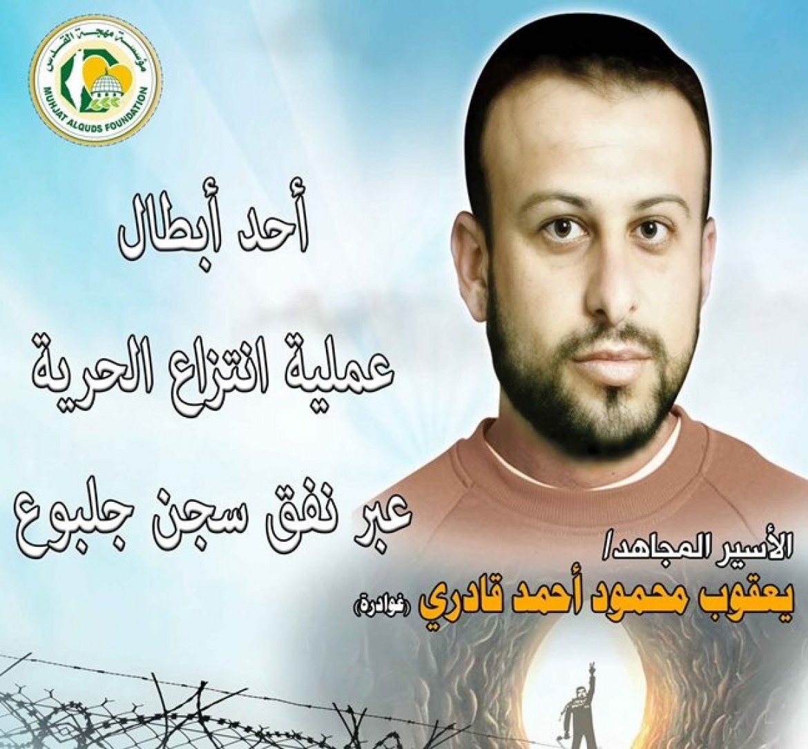 جدير بالذكر أن الأسير يعقوب قادري من قرية بئر الباشا بمحافظة جنين شمال الضفة المحتلة، ولد بتاريخ 22/12/1972م؛ وهو أعزب؛ واعتقلته قوات الاحتلال الصهيوني بتاريخ 18/10/2003م؛ وأصدرت المحكمة الصهيونية بحقه حكمًا بالسجن المؤبد (مرتين) بالإضافة إلى (35 عامًا) بتهمة الانتماء والعضوية في سرايا القدس الجناح العسكري لحركة الجهاد الإسلامي والمشاركة في عمليات السرايا ضد قوات الاحتلال، ونجح الأسير المجاهد يعقوب بتاريخ 06/09/2021م برفقة إخوانه الأسرى محمود عارضة، أيهم كمامجي، محمد العارضة، ومناضل انفيعات وزكريا زبيدي بانتزاع حريتهم عبر نفق من سجن جلبوع، وبتاريخ 10/09/2021م في مساء يوم الجمعة في مدينة الناصرة في الداخل المحتل أعادت قوات الاحتلال اعتقاله مع الأسير محمود عبد الله عارضة، وفي اليوم التالي أعادت قوات الاحتلال اعتقال الأسيرين محمد قاسم عارضة، والأسير زكريا زبيدي، وبتاريخ 19/09/2021م فجر يوم الأحد في الحارة الشرقية بمدينة جنين بعد مطاردة وبحث استمرت 13 يوم أعادت قوات الاحتلال اعتقال الأسيرين أيهم كمامجي ومناضل انفيعات، وأصدرت ما يسمى محكمة الناصرة الاحتلالية في الداخل المحتل حكمًا بالسجن لمدة خمسة أعوام بالإضافة لغرامة مالية مقدارها خمسة آلاف شيكل على الأسرى الستة الذي انتزعوا حريتهم كعقوبة جائرة بحقهم على هروبهم عبر نفق جلبوع يضافوا لأحكامهم، كما أصدرت تلك المحكمة حكمًا بالسجن لمدة أربعة أعوام وغرامة مالية مقدارها 2000 شيكل بحق الأسرى الخمسة الذين ساعدوهم بحفر النفق وهم الأسرى إياد جرادات، علي أبو بكر، محمد أبو بكر، محمود أبو اشرين لكن الأسير الخامس وهو قصي مرعي رفض الاعتراف بلائحة الاتهام وحتى اللحظة لم يصدر حكمًا بحقه بعد.