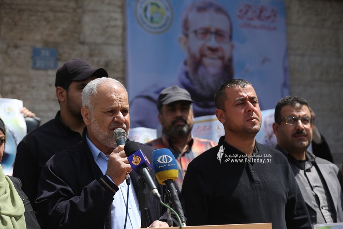 نظمت مؤسسة مهجة القدس للشهداء للأسرى والجرحى والإطار النسوي لحركة الجهاد الإسلامي اليوم الأحد 16/4/2023، وقفة دعم وإسناد للأسير القائد الشيخ خضر عدنان المضرب عن الطعام لليوم الـ (71) على التوالي في سجون الاحتلال رفضًا لاعتقاله التعسفي.
