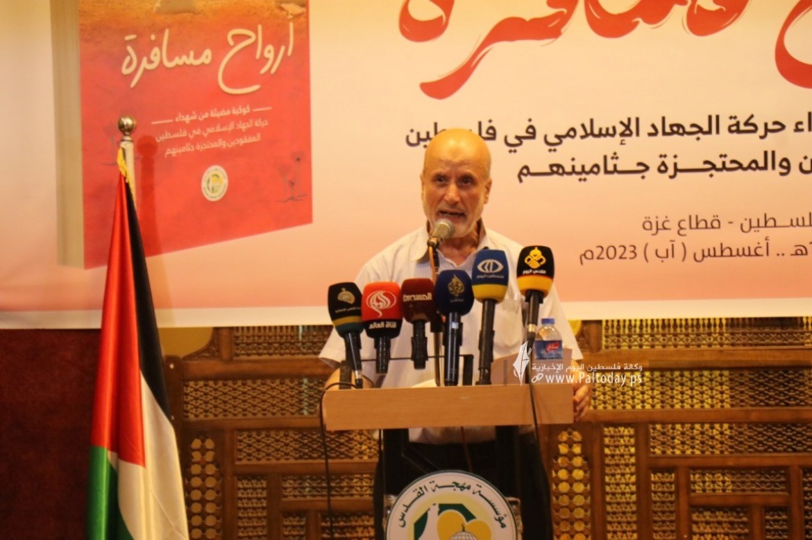 جاء ذلك، في حفل إشهار كتاب (أرواح مسافرة- كوكبة مضيئة من شهداء حركة الجهاد الإسلامي في فلسطين، والمفقودين والمحتجزة جثامينهم) نظمته مؤسسة مهجة القدس للشهداء والأسرى والجرحى، في مدينة غزة، بحضور قادة من فصائل فلسطينية وكوادر من حركة الجهاد، وأفراد من ذوي الشهداء.