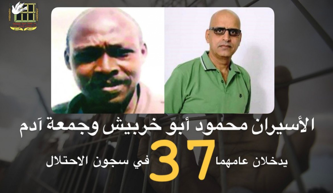يدخل الأسيران جمعة إبراهيم آدم، ومحمود سالم أبو خربيش، من محافظة أريحا والأغوار، أمس الجمعة، عاميهما الـ38 في سجون الاحتلال الإسرائيلي.