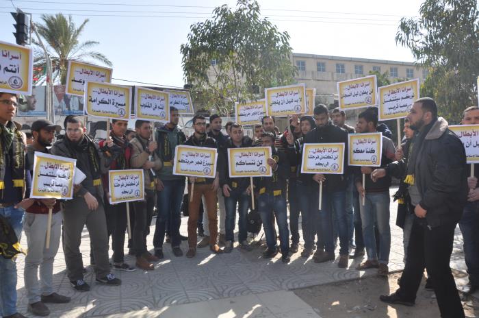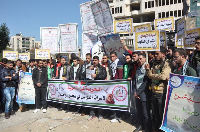 نظمت الأطر الطلابية، في جامعات قطاع غزة، الأربعاء، وقفة تضامنية لدعم واسناد الأسرى في سجون الاحتلال وتضامن مع الأسرى المضربين عن الطعام ضد سياسة الاعتقال الإداري وذلك على مفترق الجامعات رمزون الأزهر، وبمشاركة حاشدة من أبناء الحركة الطلابية وكذلك طلبة الجامعات.