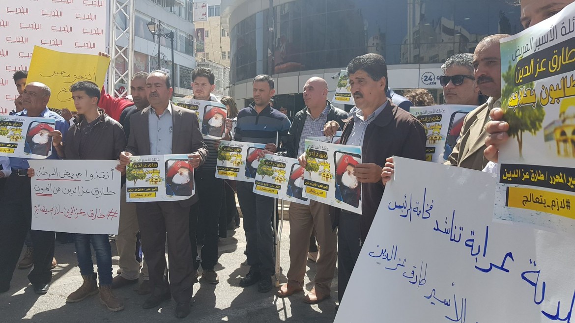 في السياق، نظَّم التجمع الاعلامي الفلسطيني، اليوم الإثنين، وقفة تضامنية مع الأسير المُحرر والمبعد الى غزة طارق عز الدين مدير إذاعة صوت الأسرى، للمطالبة بسفره الى الخارج لتلقي العلاج بعد تدهور وضعه الصحي جراء إصابته بمرض "لوكيميا الدم".